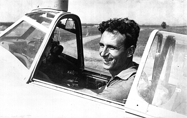 Tovární pilot Miloslav Šmídt (v závodě přezdívaný “Čára”) v kabině C-11 po záletu.