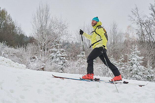 Sjezdovku v Karolince tradičně ještě před zahájením sezony vyzkoušeli skialpinisté.