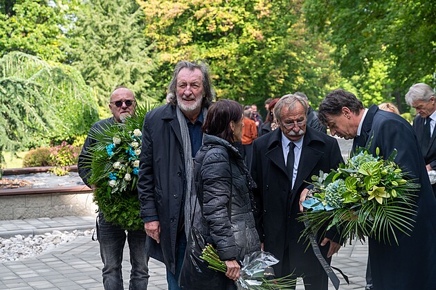 Na Lesní hřbitov ve Zlíně se lidé přišli rozloučit s podnikatelem a zlínským rodákem Stanislavem Matouškem, majitelem karlovarského Parkhotelu Richmond. Dorazili také herci Boleslav Polívka a Pavel Zedníček (2.října 2025)