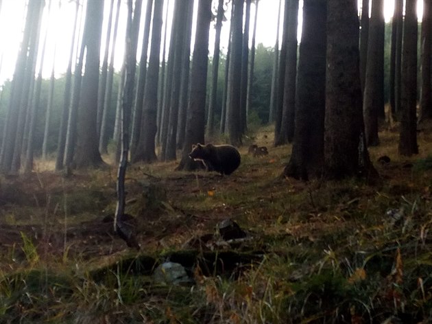 Medvěd v oblasti beskydské hory Smrk na Frýdecko-Místecku. (15. listopadu 2018)