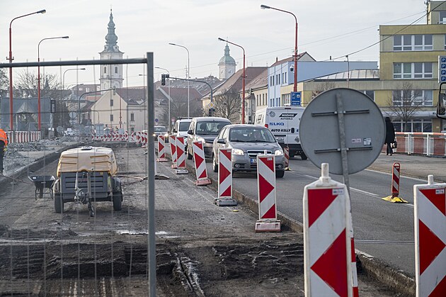 Silničáři v Uherském Hradišti opravují most J. A. Bati přes roku Moravu. (březen 2025)