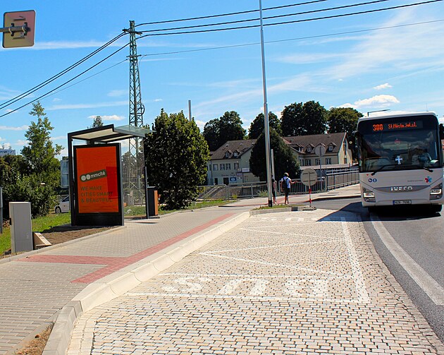Nová autobusová zastávka Rybárny v Uherském Hradišti (srpen 2025)