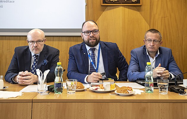 Tisková konference k plnění prosincové dohody se zdravotníky a dalšímu postupu Ministerstva zdravotnictví. Na snímku ministr zdravotnictví Vlastimil Válek, Václav Pláteník a Ladislav Dušek.. (25. září 2024)