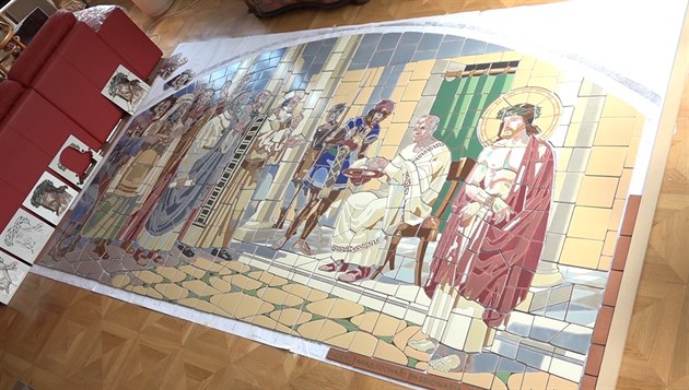Museli totiž doplnit chybějící části. Jaké byly, hledali v jiných částech mozaiky i v historických pramenech. Rozpoznali jmenovitě každou z postav. „Člověka to pohltí. Köhler vytvořil mistrovské dílo a my s ním při práci debatovali,“ tvrdí Pařík.