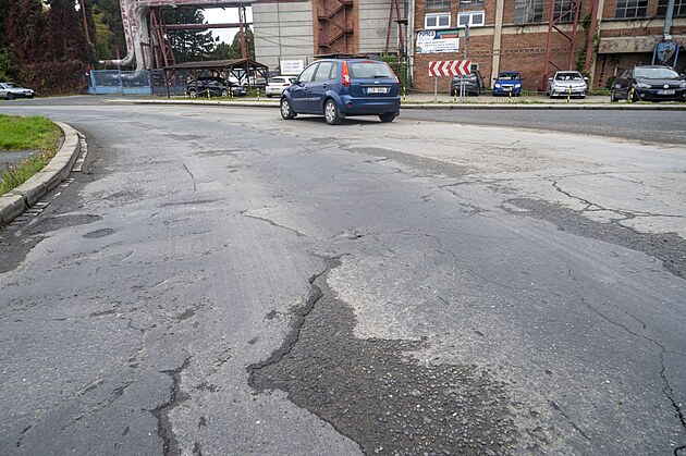 Rozbitou silnici na frekventované ulici Nábřeží, která slouží jako objížďka centra Zlína, město opraví. (říjen 2024)