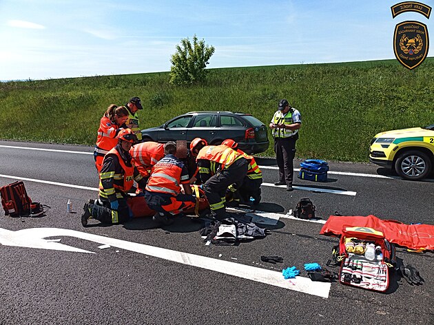 U Bánova na Uherskobrodsku došlo k vážné nehodě osobního vozu a motorkáře. (květen 2025)