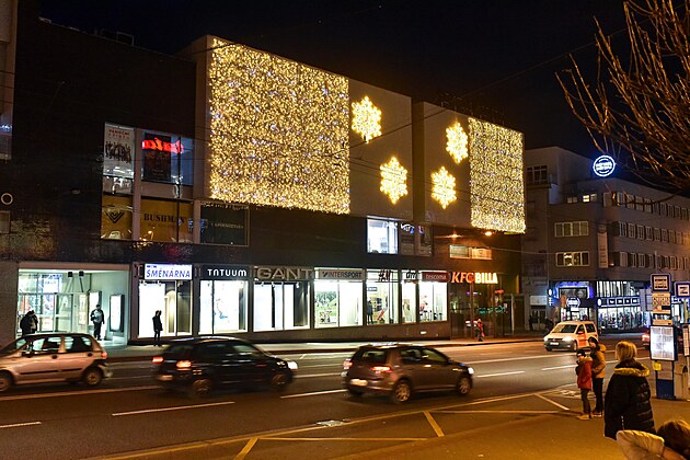 Vánoční výzdoba v obchodním centru Zlaté jablko ve Zlíně. (2022)
