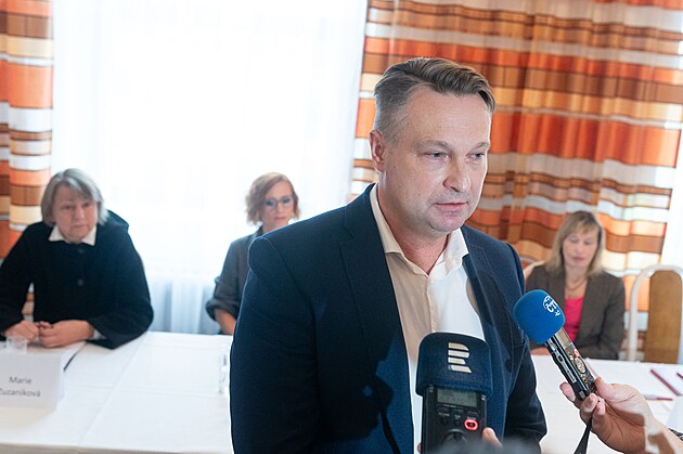 Odbory Krajské hygienické stanice Zlín vyzvaly ředitelku Evu Sedláčkovou k rezignaci. Na snímku právník zlínské hygieny Martin Hába. (10. října 2025)