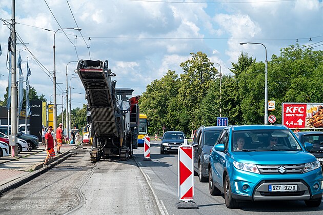 Silničáři začali opravovat úsek silnice I/49 na tř. T. Bati ve Zlíně-Loukách. V obou směrech je uzavřený jeden jízdní pruh a na hlavním tahu mezi Zlínem a Otrokovicemi se tvoří dlouhé kolony. (15. července 2025)