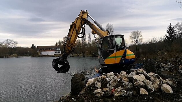 Nestabilní břeh Štěrkoviště zpevní tuny kamene