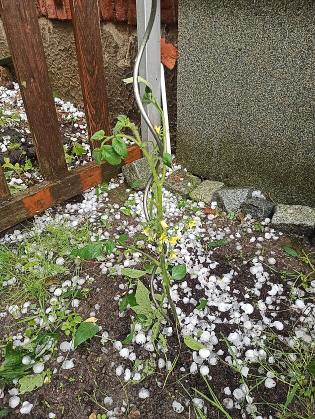 Otrokovice zasáhlo krupobití. Kroupy dosahovaly velikosti ping-pongových míčků. (5. června 2025)