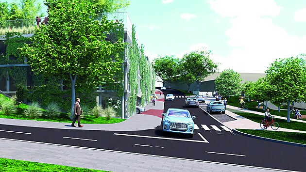 Vizualizace nového parkovacího domu u městských lázní ve Zlíně