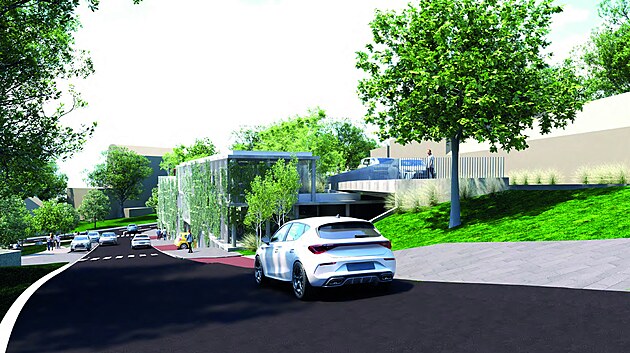 Vizualizace nového parkovacího domu u městských lázní ve Zlíně