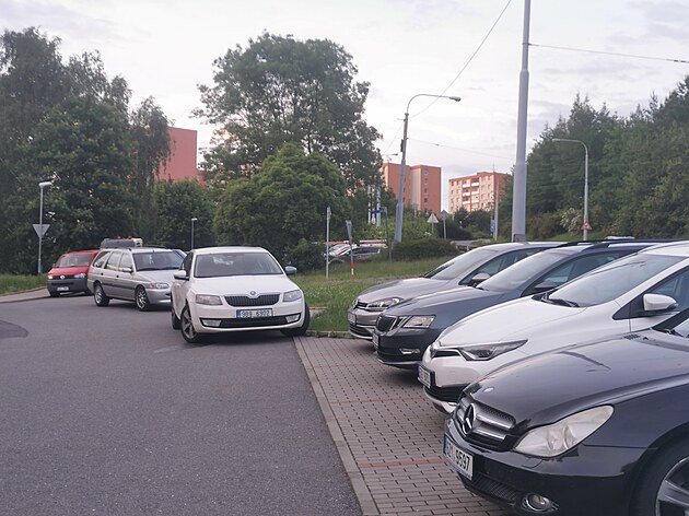 Parkování na sídlišti Jižní Svahy ve Zlíně. (květen 2024)