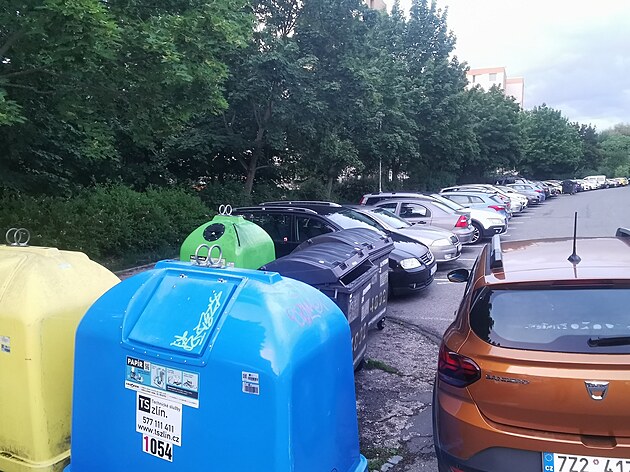 Parkování na sídlišti Jižní Svahy ve Zlíně. (květen 2024)