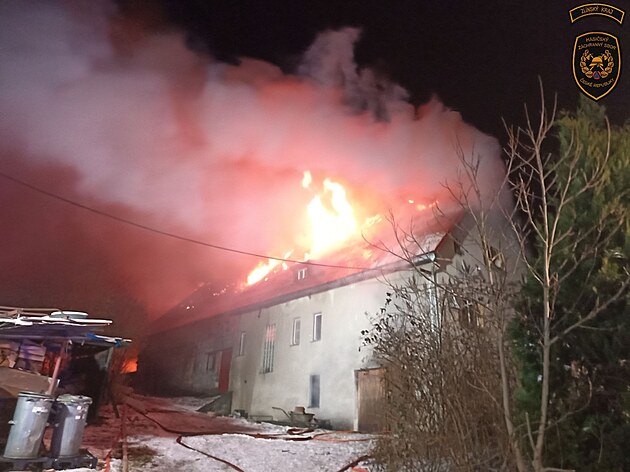 Likvidaci požáru rodinného domu v Prostřední Bečvě komplikovala zledovatělá silnice. (leden 2025)