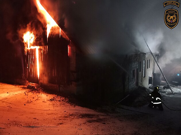 Likvidaci požáru rodinného domu v Prostřední Bečvě komplikovala zledovatělá silnice. (leden 2025)