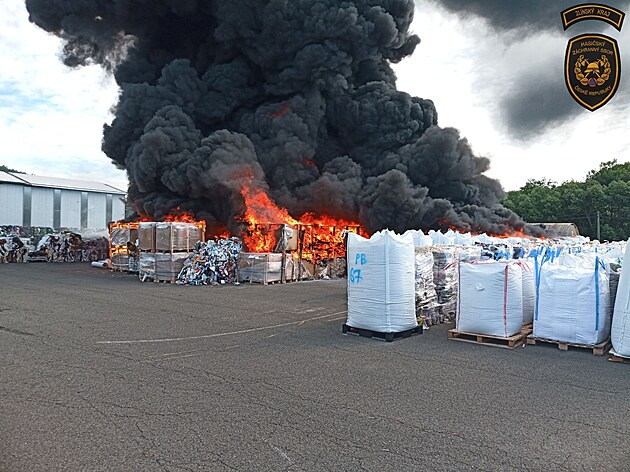 Na dvoře areálu firmy v Ludkovicích hořely plasty. (25. června 2025)