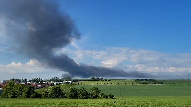 V Hustopečích hoří průmyslový areál, dým je vidět na kilometry daleko