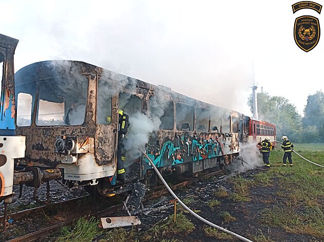 Hasiči zasahovali u požáru vyřazených vagonů ve Valašském Meziříčí. (květen 2025)