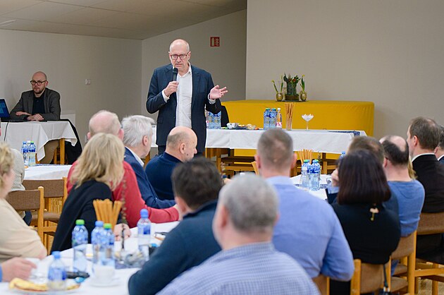 Ministr školství Mikuláš Bek se v Liptále na Vsetínsku setkal se starosty obcí, kterým se nelíbí návrh ministerstva na změnu financování nepedagogických pracovníků škol. (únor 2025)