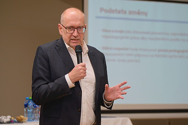 Ministr školství Mikuláš Bek se v Liptále na Vsetínsku setkal se starosty obcí, kterým se nelíbí návrh ministerstva na změnu financování nepedagogických pracovníků škol. (únor 2025)