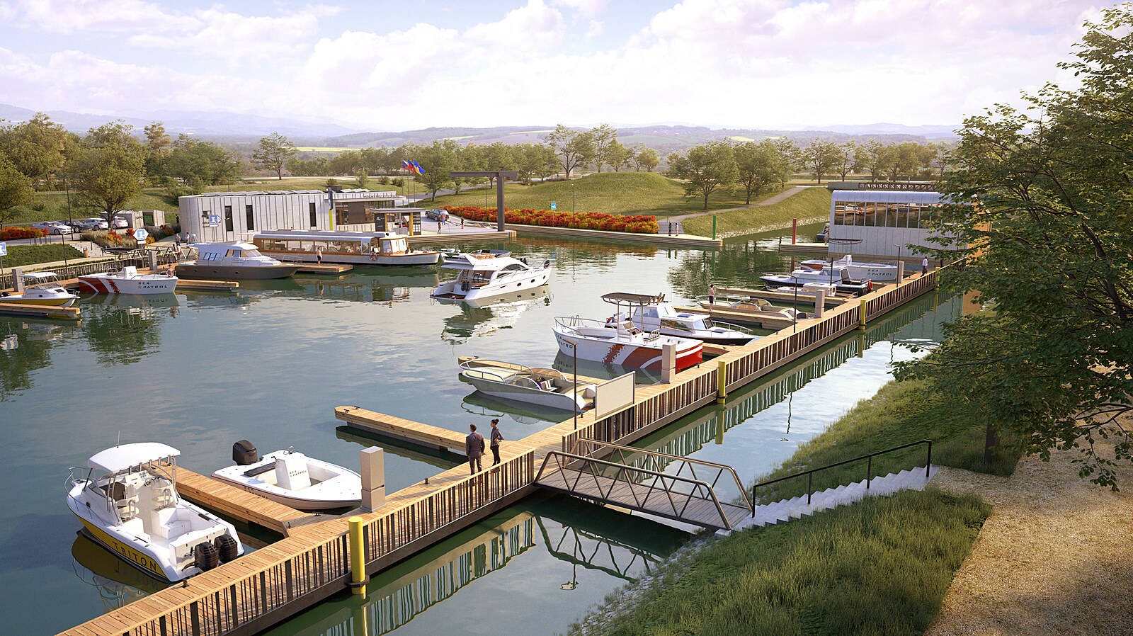 Přístav za zhruba 200 milionů korun má vzniknout za železničním mostem na pravém břehu Moravy. Z řeky se lodě dostanou kanálem do nového „bazénu“, kde by mohlo kotvit padesát menších plavidel. Bude tam i potřebné zázemí: servisní centrum umožňující čerpání pohonných hmot, doplnění pitné vody či odevzdání odpadu. K tomu parkoviště pro více než třicet aut a provozní budova s hygienickým zázemím.