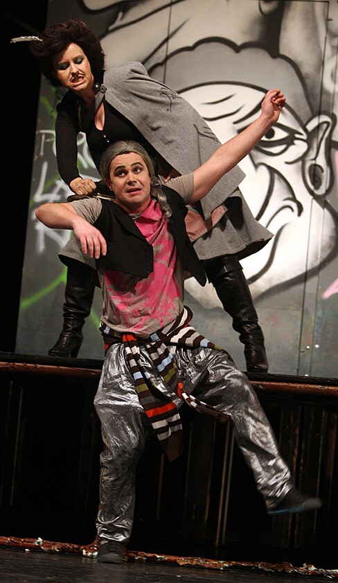 Radovan Král jako Truffaldino ve hře Sluha dvou pánů