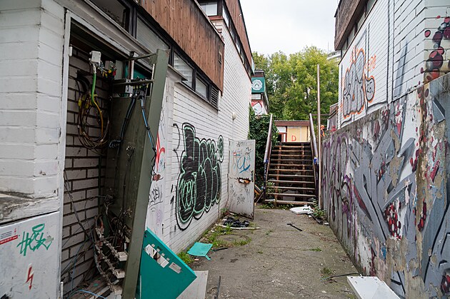 Vyklízením budov začala demolice Šmoulího města na Jižních Svazích ve Zlíně. (23. září 2025)