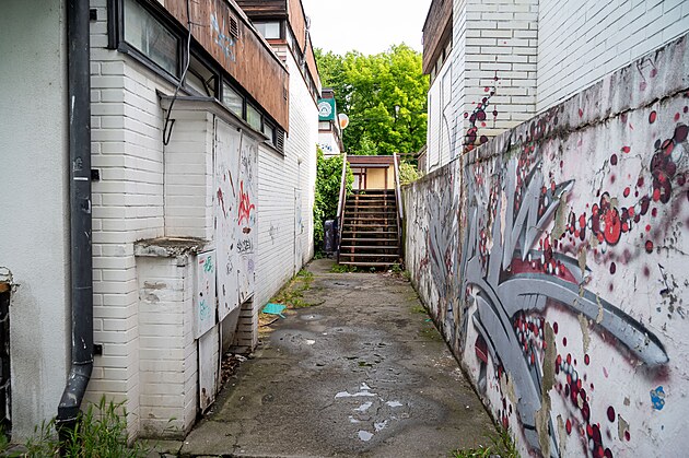 Provozovny ve Šmoulím městě na Jižních Svazích postupně mizí. (květen 2025)
