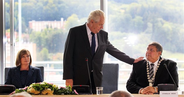 LIDOVCI CHYBĚLI. Prezident diskutoval s krajskými zastupiteli, o setkání však nemělo zájem osm z deseti zastupitelů za KDU-ČSL Zdůvodnili to tím, že program Zemanovy návštěvy vypadá spíš jako předvolební kampaň Strany práv občanů Zemanovci.
