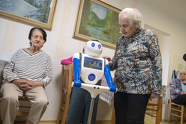 Sociální robot Robin s umělou inteligencí pomáhá klientům Domova pro seniory Uherské Hradiště zmírnit pocit osamělosti. (březen 2025)