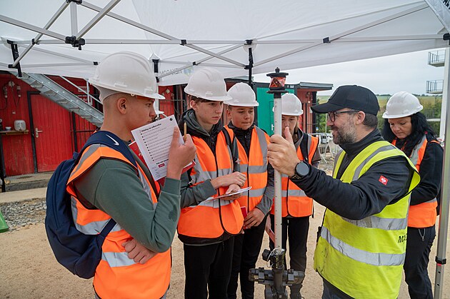 Studenti základních a středních škol na Uherskobrodsku se v rámci akce Jak roste dům přišli podívat na stavbu bytovky v Uherském Brodě. Mohli si vyzkoušet práci zedníka, tesaře, instalatéra nebo třeba bagristy. (září 2025)