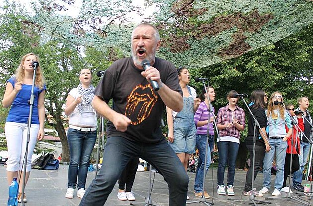 Sbor Svatý Pluk z Uherského Hradiště letos slaví 30 let existence. V popředí sbormistr Jan Gajdošík