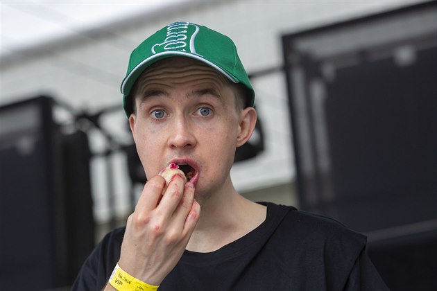 Radim Dvořáček si vkládá do úst švestkový knedlík. (17. srpna 2019)