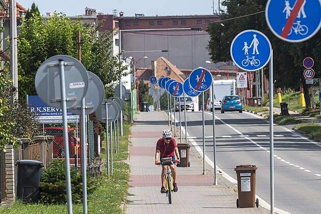 Konec, začátek, konec začátek... Cyklostezku v uherskohradišťské místní části Jarošov lemuje „alej“ dopravních značek.