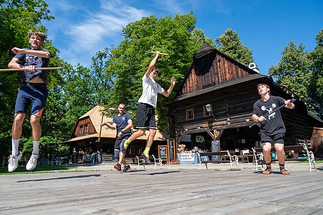 Škola mladých odzemkářů. Valašské muzeum v přírodě Rožnov pod Radhoštěm, Dřevěné městečko. (červenec 2025)