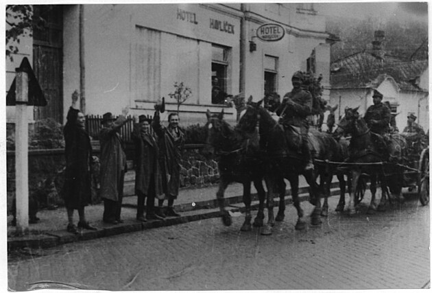 Vojáci rumunské armády v Luhačovicích, 2. května 1945.