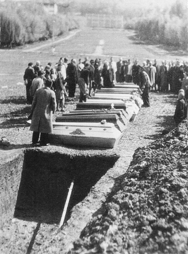 Pohřbívání padlých při osvobozování Zlína, dolní část Gahurova prospektu.