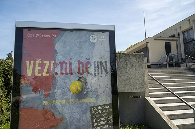 Plakát zve na premiéru dokumentu o uherskohradišťské věznici (duben 2024)