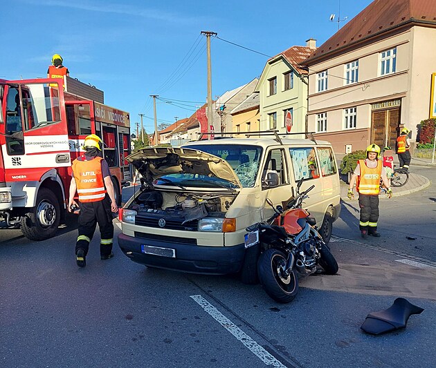 Střet s dodávkou ve Vizovicích odnesl motorkář těžkým zraněním. (7. dubna 2024)