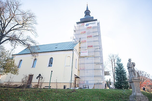 Věž vizovického kostela svatého Vavřince prochází rekonstrukcí, protože má problémy se statikou. (listopad 2025)