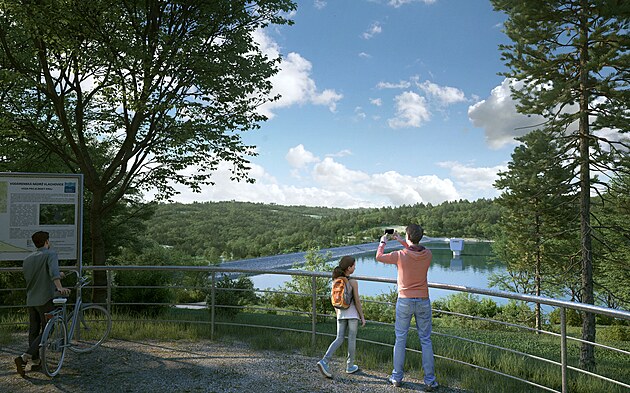 Vizualizace budoucí přehrady Vlachovice, pohled na hráz