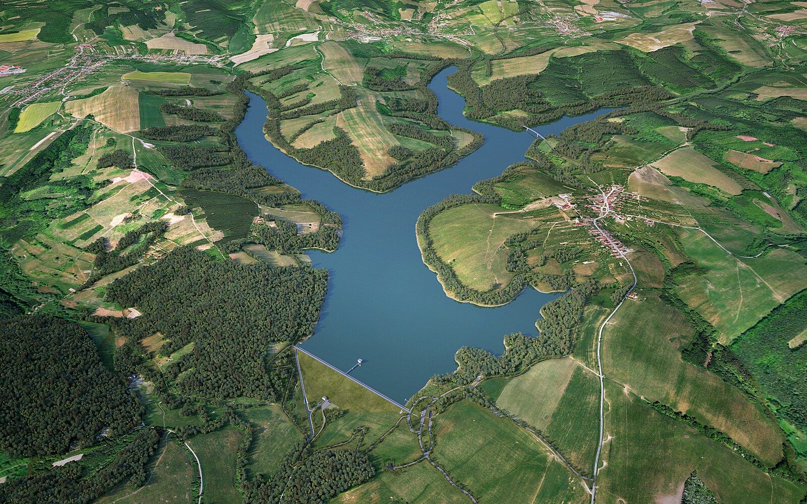 Letecký pohled na budoucí vlachovickou přehradu