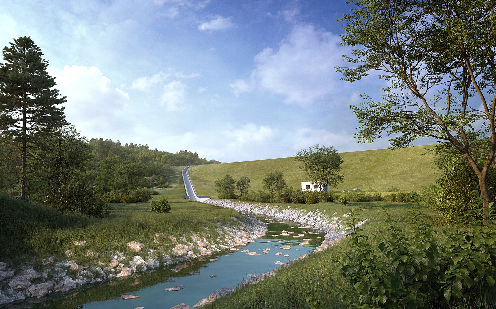 Vizualizace budoucí přehrady Vlachovice, pohled na hráz