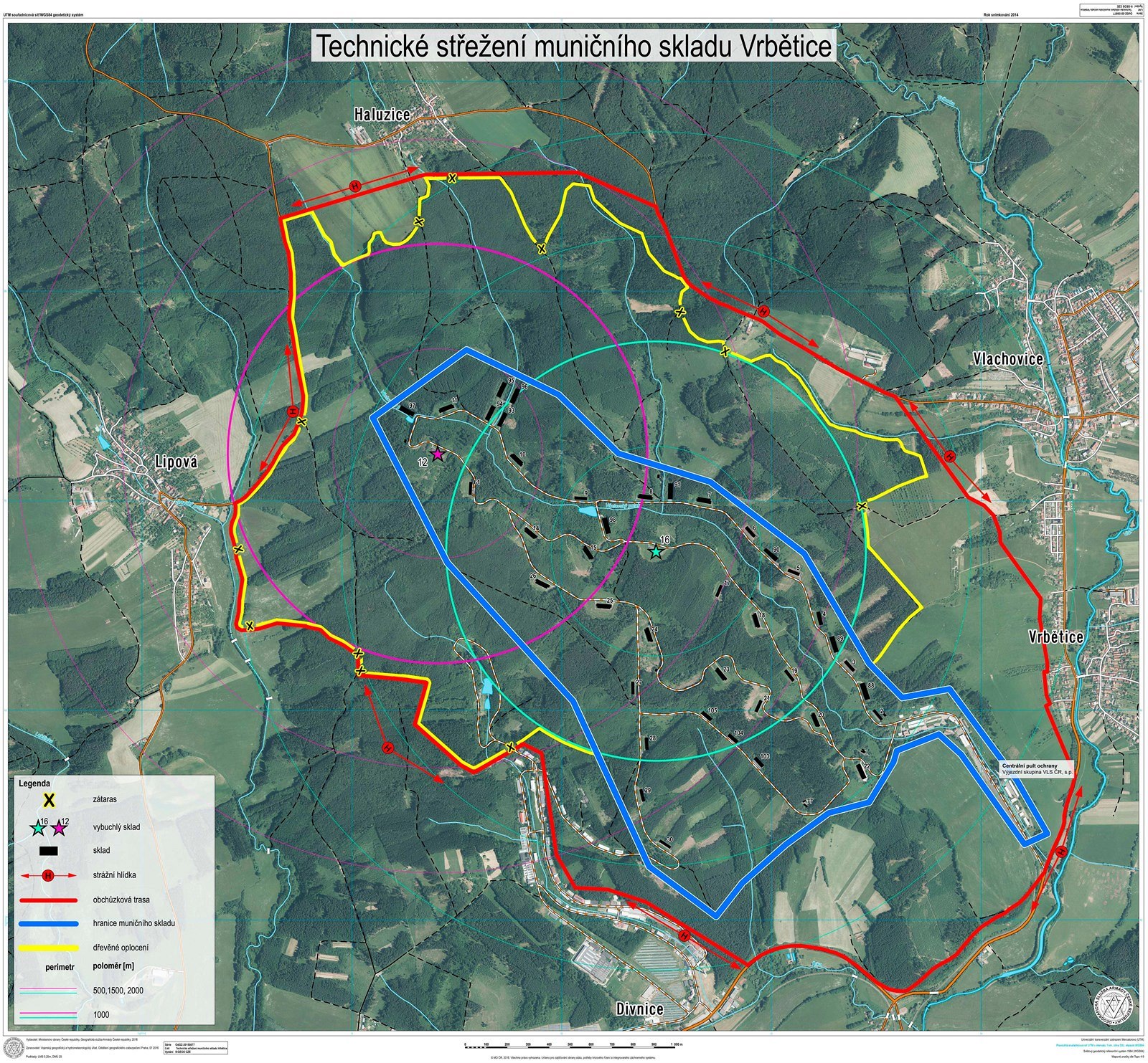Mapa oplocení kolem areálu muničních skladů ve Vlachovicích-Vrběticích (2015).