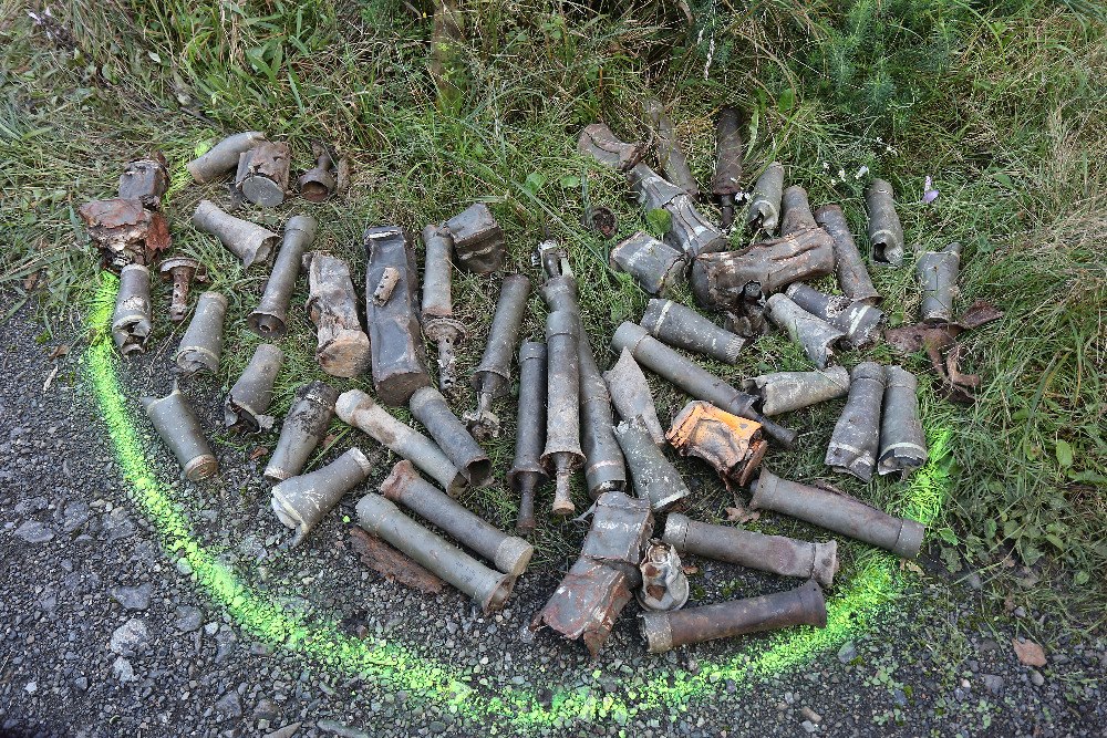 Bezpečnostní opatření byla nezbytná, nedaleko zázemí pro vyšetřovatele totiž našli část dělostřeleckého granátu v osmimetrové výšce.