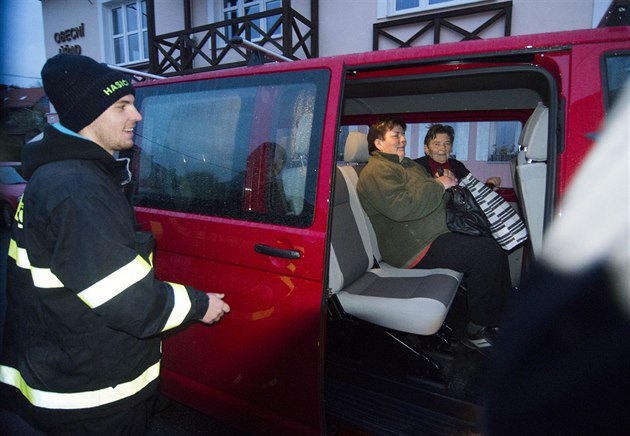 Dvě ženy z Lipové využily evakuační vozidlo hasičů. Většina evakuovaných odjela sama nebo odešli k příbuzným v jiné části obce. (2014)