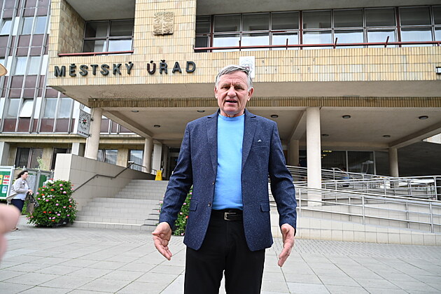 Happening proti zákazu školní akce, před radnicí ve Vsetíně. Starosta Jiří Čunek. (červen 2025)