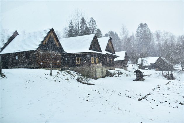 Valašská dědina v rožnovském skanzenu (březen 2021)